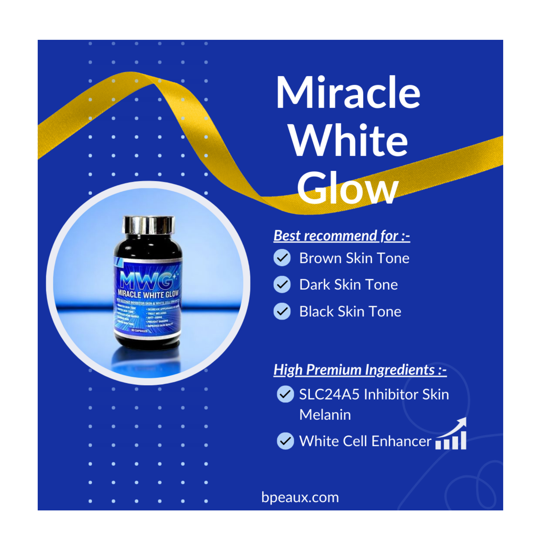 "Miracle White Glow" is a dietary supplement formulated to enhance skin radiance and promote a brighter complexion. Packed with a blend of skin-nourishing vitamins, minerals, and antioxidants, this supplement aims to support overall skin health from within.
